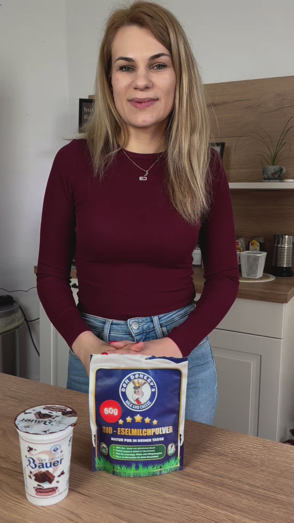 Eselsmilch gilt seit der Antike als wahres Schönheits- und Gesundheitsgeheimnis. Ihre einzigartige Zusammensetzung macht sie verträglicher, nährstoffreicher und hautfreundlicher als viele vergleichbare Milchsorten. Sie enthält einen hohen Anteil an Vitamin A, B, C und E, essentielle Fettsäuren sowie wertvolle Aminosäuren, die Haut, Immunsystem und Verdauung positiv unterstützen. Im Vergleich zu Kuh- oder Ziegenmilch ist Eselsmilch feiner, hypoallergen und leichter verdaulich, wodurch sie sich auch ideal für empfindliche Haut und sensible Menschen eignet. Ihr natürlicher Reichtum an Antioxidantien und Enzymen sorgt für Regeneration, Feuchtigkeit und Schutz – innen wie außen.